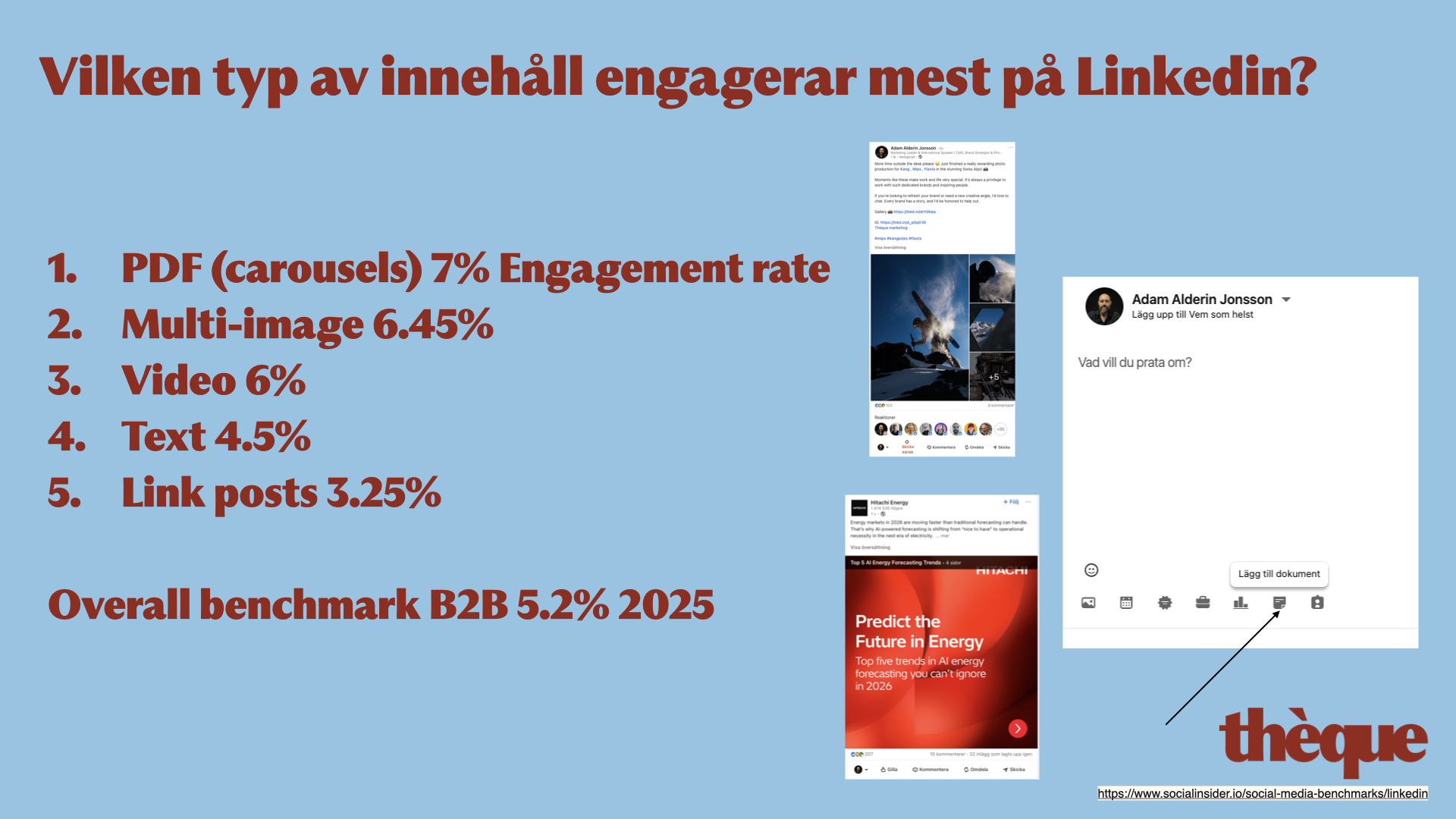 4. Tänk kontinuitet och variation Konsekvens bygger förtroende. Variation håller uppmärksamheten. De bästa LinkedIn-närvaron kombinerar båda: en igenkännbar röst och stil, med tillräcklig variation i ämnen och format för att förbli intressant över tid. Lärande innehåll tenderar att prestera särskilt bra i den balansen.
